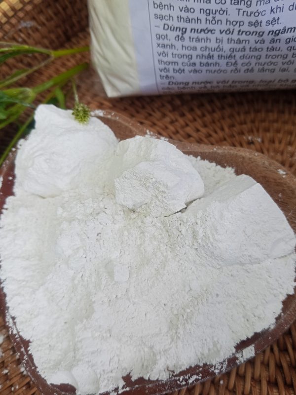 2. Quy cách: Vôi bột được đóng gói 1kg, cần bảo quản nơi khô, thoáng; hạn sử dụng 1 -2 năm. Đây là vôi được nung ra từ vùng núi đá vôi Ninh Bình.