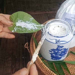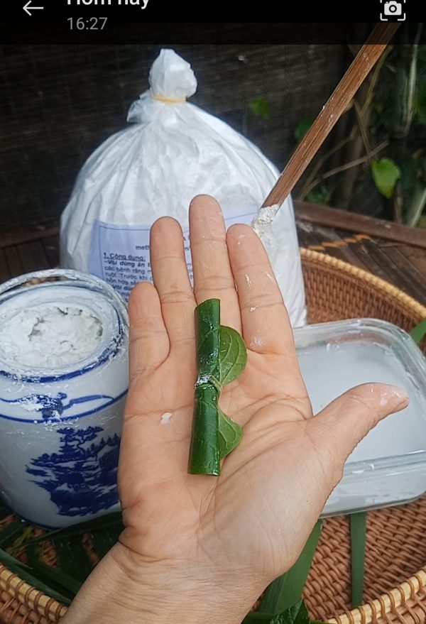 –Vôi dùng ăn trầu, giúp đỏ môi thắm da; phòng tránh các bệnh răng miệng và tiêu diệt giun sán trong đường ruột. Trước khi dung, pha vôi bột với nước sạch thành hỗn hợp sền sệt.